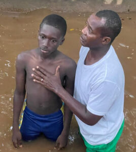 Benjamin in West Africa – Benjamin is teaching You Last Forever evangelism materials to disciples starting tomorrow. He regularly trains disciples and recruits for our summer project. (Left: Benjamin baptizes one of 7 disciples last March)